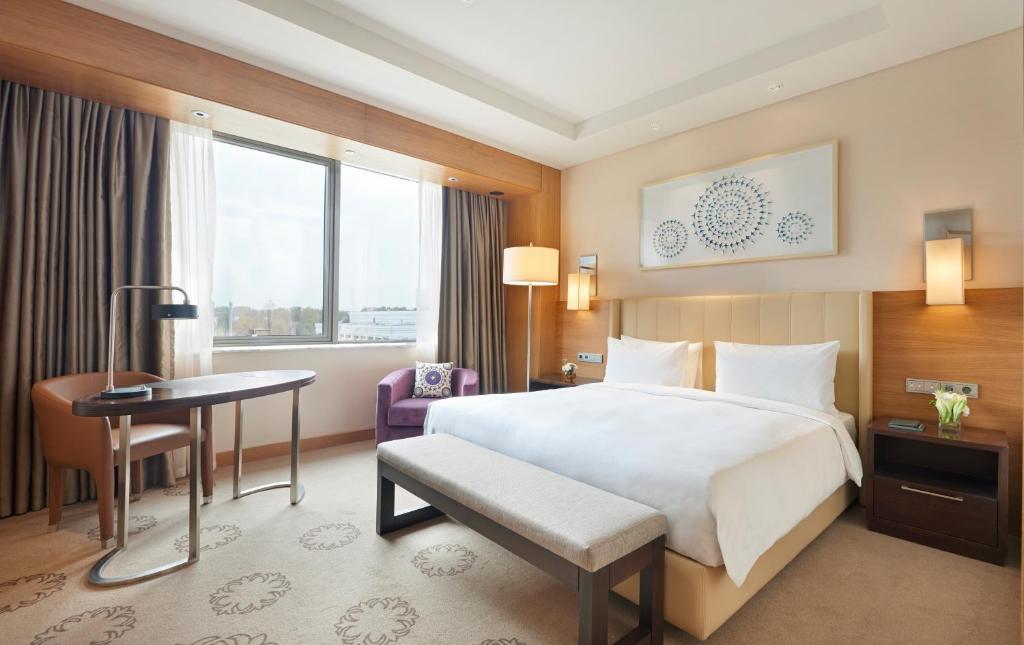 Hyatt Regency Tashkent offers bright, spacious guestrooms with floor-to-ceiling windows that are elegantly decorated with contemporary furniture and locally inspired artwork. Each guestroom has a generous workspace with ergonomic chair and charging station, and bathrooms feature a soothing walk-in rain shower with separate bathtub. Regency Club rooms and suites include access to the Regency Club Lounge on the sixth floor, serving complimentary evening cocktails and hors d'oeuvres.