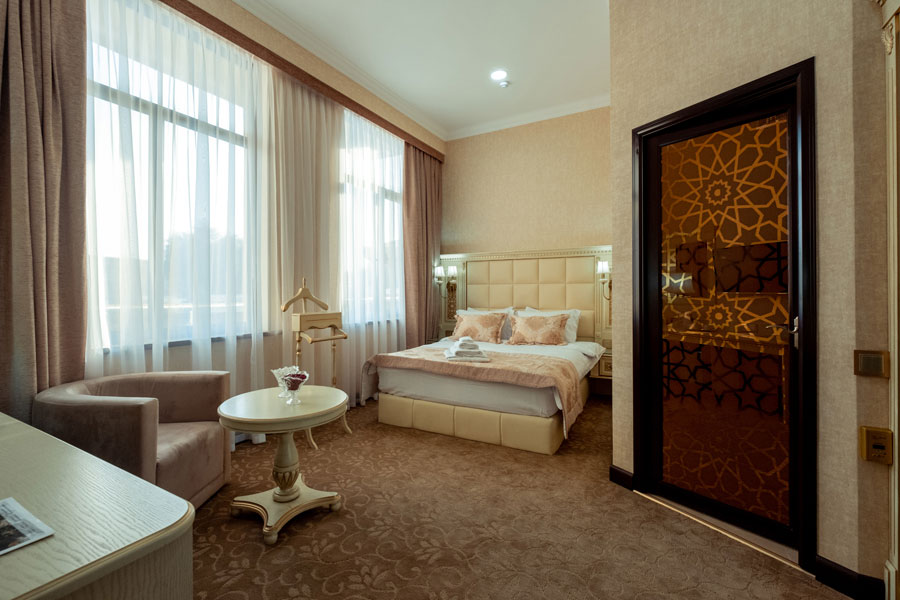 Отель предлагает своим гостям ряд услуг и удобств, которые позволят им чувствовать себя комфортно с самого первого момента бронирования, их теплого и гостеприимного приема и на протяжении всего их пребывания в неповторимом Самарканде. Это фантастическое место с роскошными встречами, невероятными ресторанами и услугами сделает ваш отдых незабываемым, а радушное и внимательное отношение персонала сделает отдых еще более приятным.
